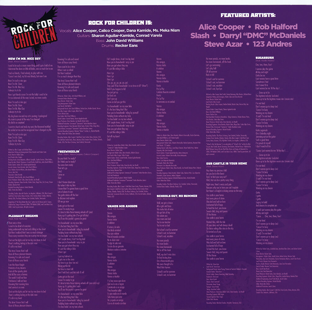 Now I'm Mr. Nice Guy (feat. Alice Cooper) / Pleasant Dreams (feat. Rob Halford) / Freewheelin' (feat. Alice Cooper, Calico Cooper) / Vamos Mis Amigos (feat. 123 Andres) / School's Out, No Bummer (feat. Alice Cooper) / Out Castle Is Your Home (feat. Steve Azar) / Sugarrush (feat. Radio Nube) / In The Midday Hour (feat. Daryl "DMC" McDaniels) / Girls Come Together (feat. Calico Cooper & Alicia Chase) / Jump In The Water / Monster Mash (feat. Alice Cooper) / My Christmas List (feat. Rob Halford, Alice Cooper, Brandon Jenner) / I'm Thirteen (feat. Alice Cooper)