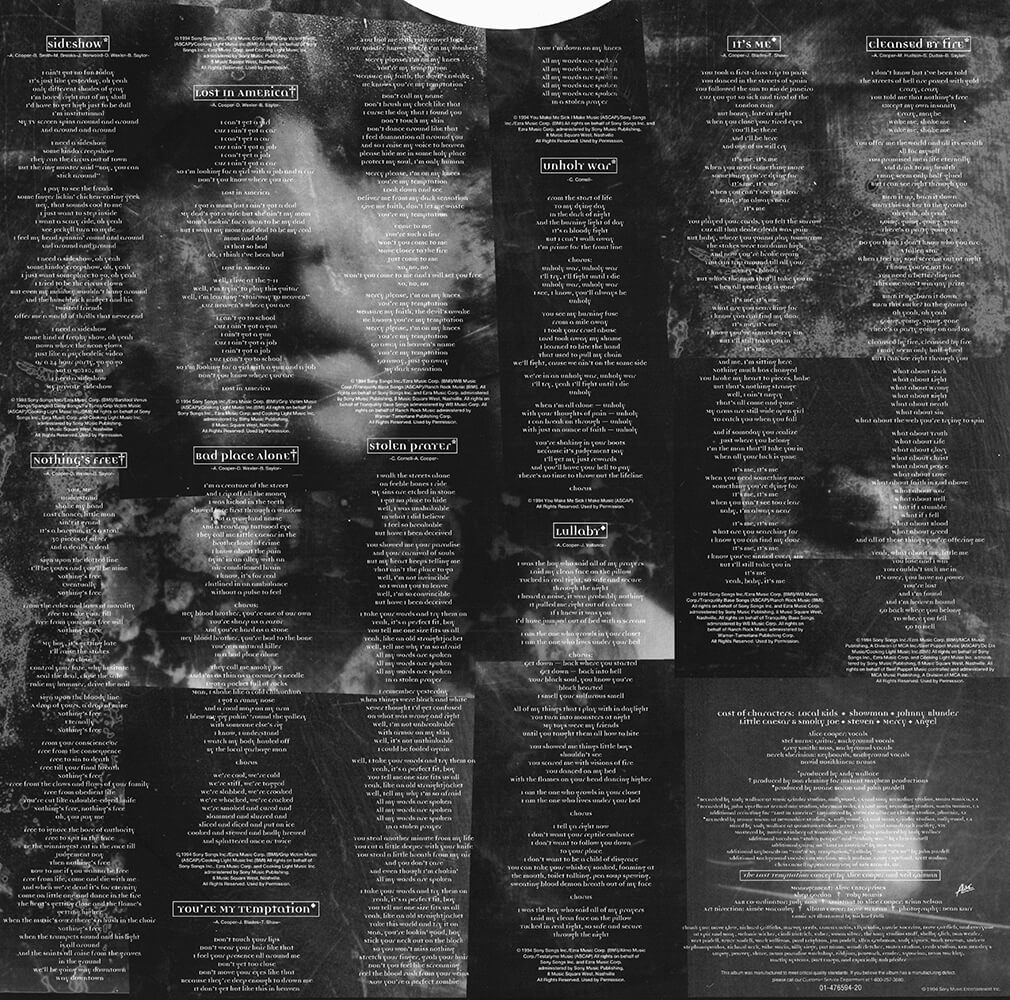 Sideshow [6:38] / Nothing's Free [5:01] / Lost In America [3:53] / Bad Place Alone [5:03] / You're My Temptation [5:08] / Stolen Prayer [5:36] / Unholy War [4:10] / Lullaby [4:27] / It's Me [4:38] / Cleansed By Fire [6:12]