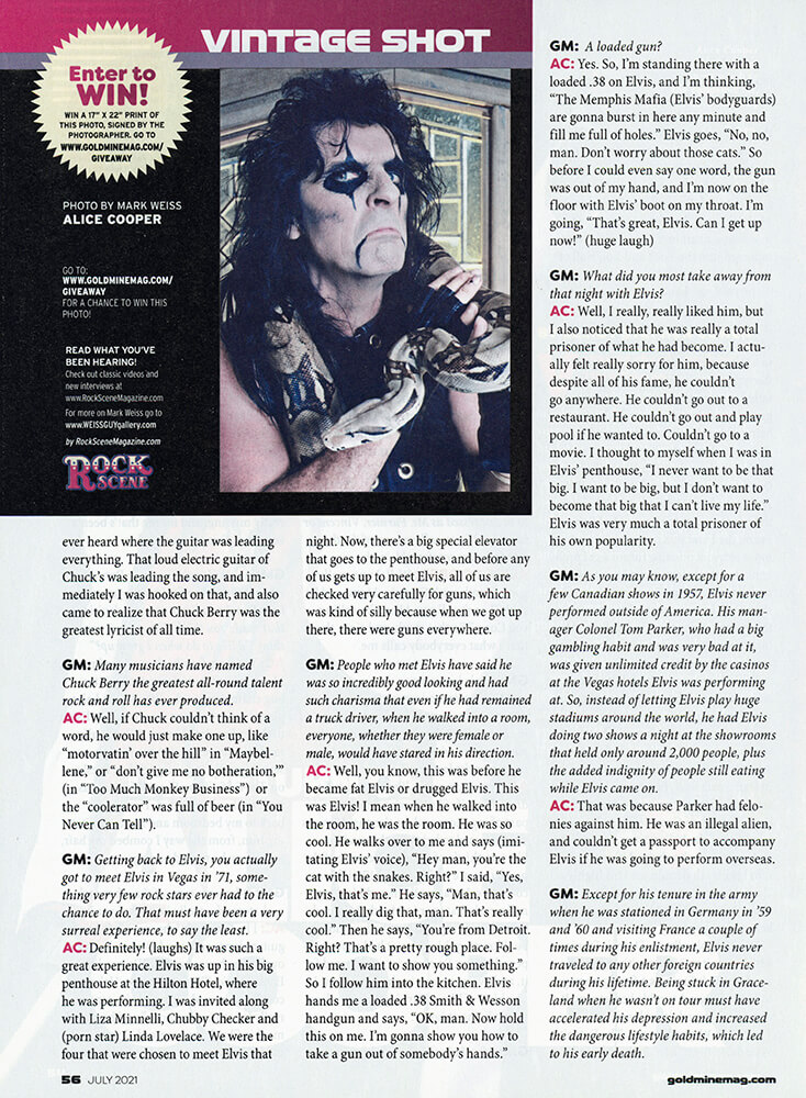 GM: Getting back to Elvis, you actually got to meet Elvis in Vegas in '71, something very few rock stars ever had to the chance to do. That must have been a very surreal experience, to say the least.