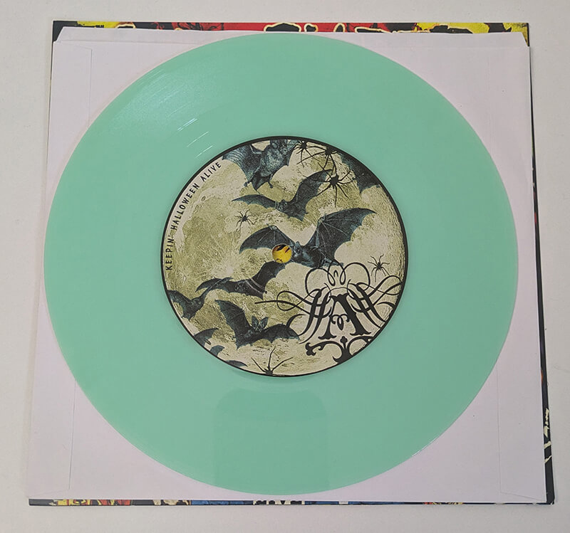 2010 7" single release of Keepin' Halloween Alive on Glow in the Dark vinyl.