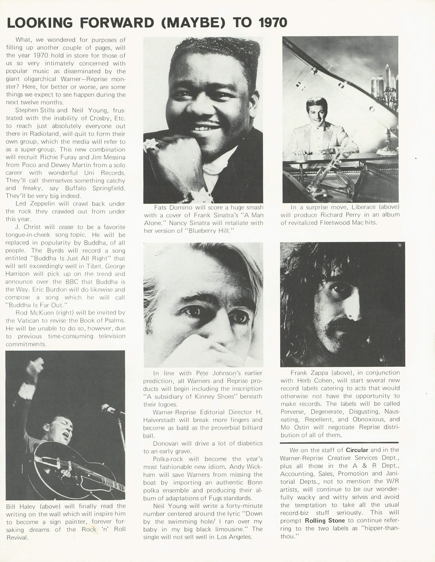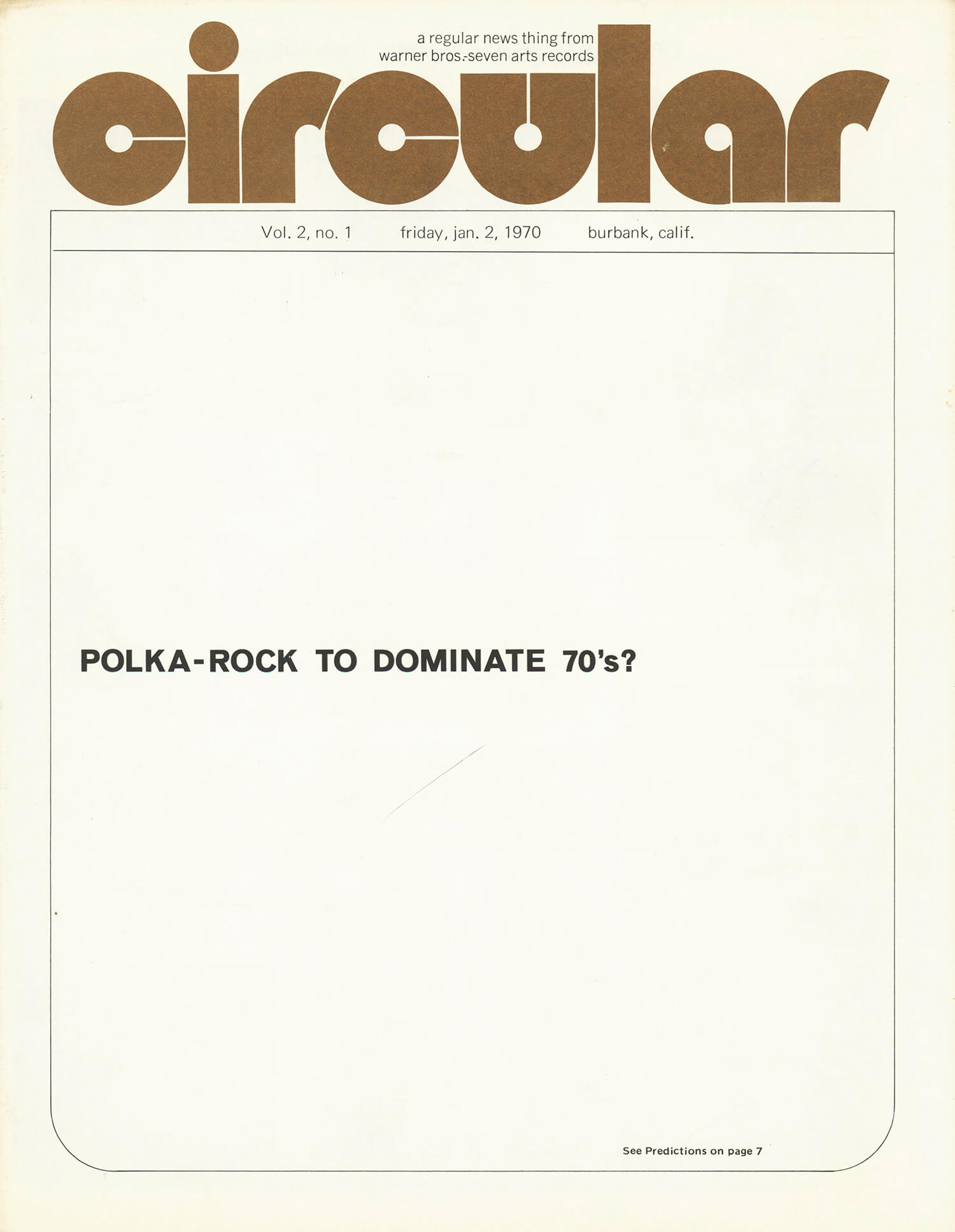 Tagged as "A Weekly News Device from Warner/Reprise" this promotional magazine ran from late 1969 until 1975. It began as a folded booklet and then ultimately shifted to a square 8 1/2" magazine format. It was often mailed out folded so it's normal to find these with a crease down the center in its square form. The magazine had features and news on the artists signed to Warner/Reprise and the music industry in general, as well as album and singles commentary and sales information.
