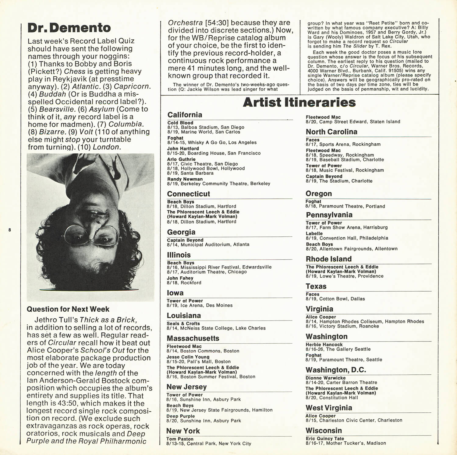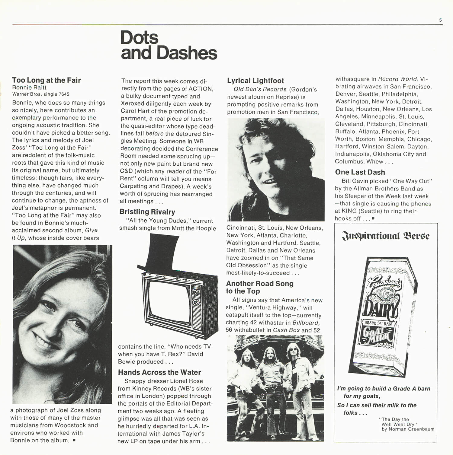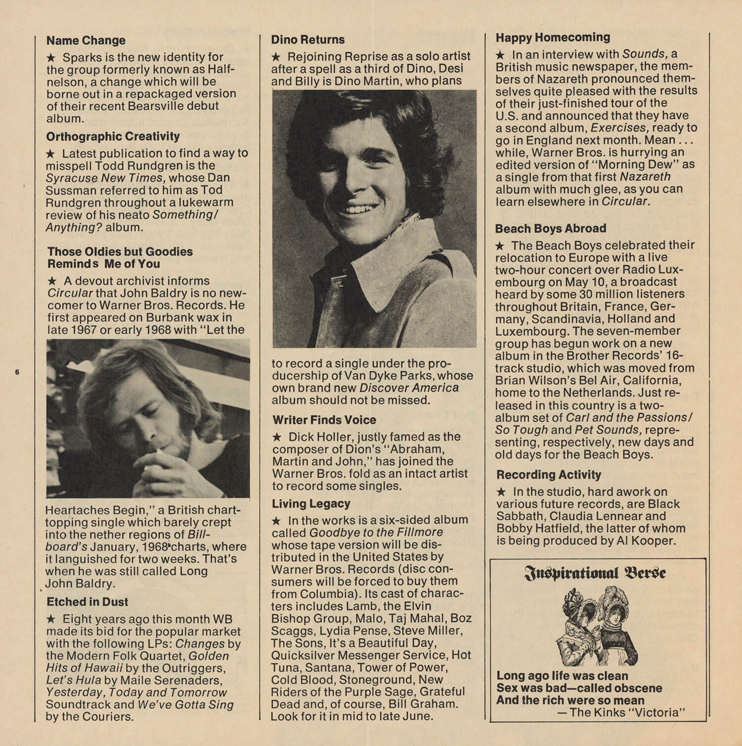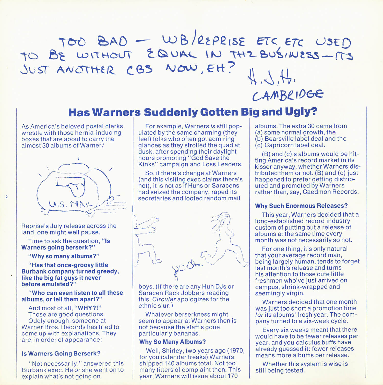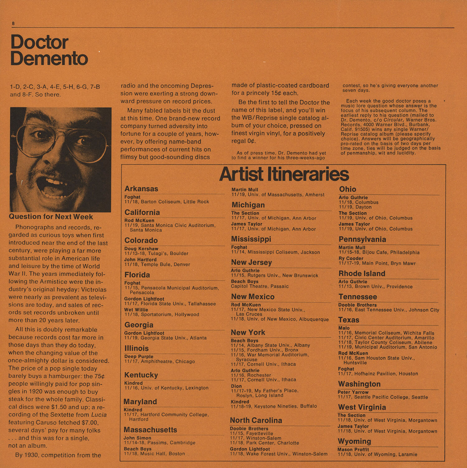 Tagged as "A Weekly News Device from Warner/Reprise" this promotional magazine ran from late 1969 until 1975. It began as a tri-folded booklet and then shifted to a square 8 1/2" magazine format. It was often mailed out folded so it's normal to find these with a crease down the center in its square form. The magazine had features and news on the artists signed to Warner/Reprise and the music industry in general, as well as album and singles commentary and sales information.