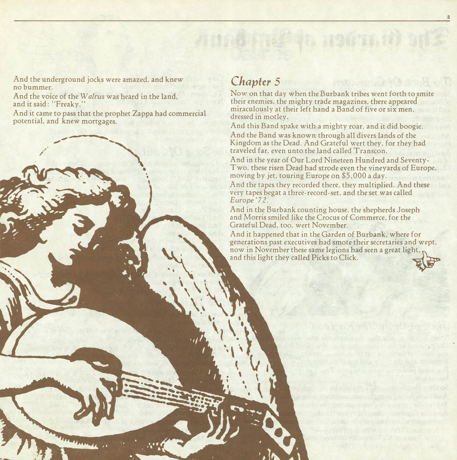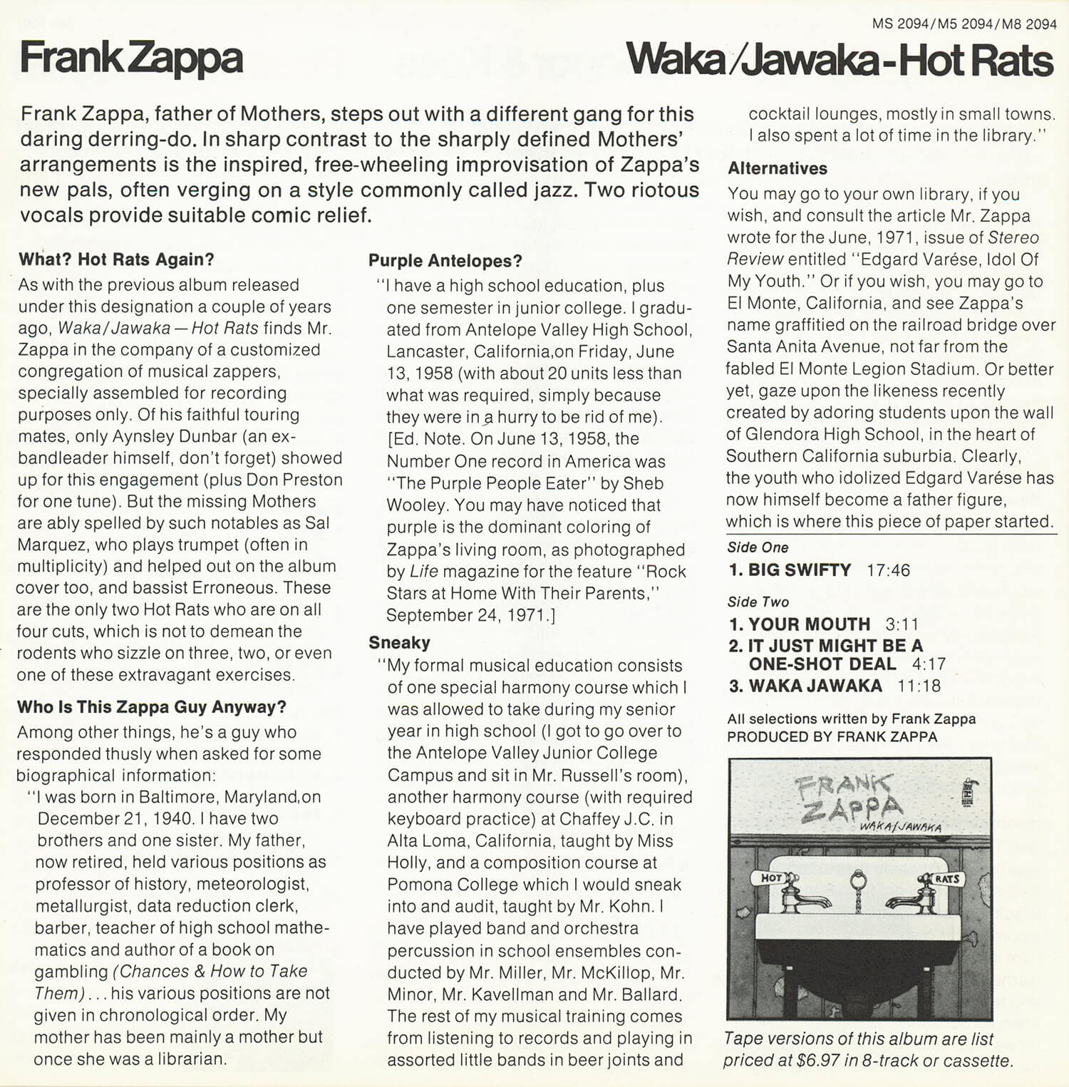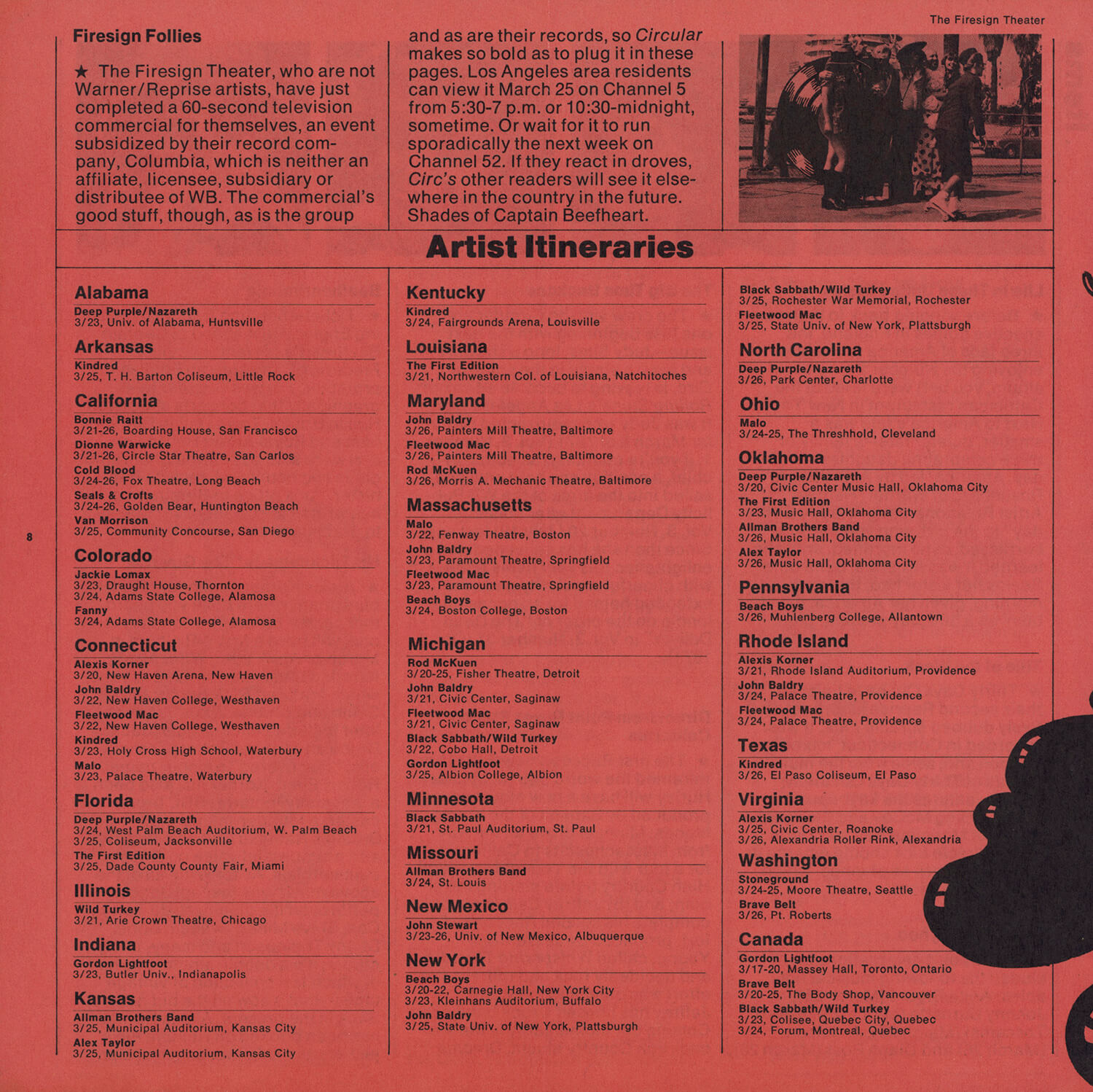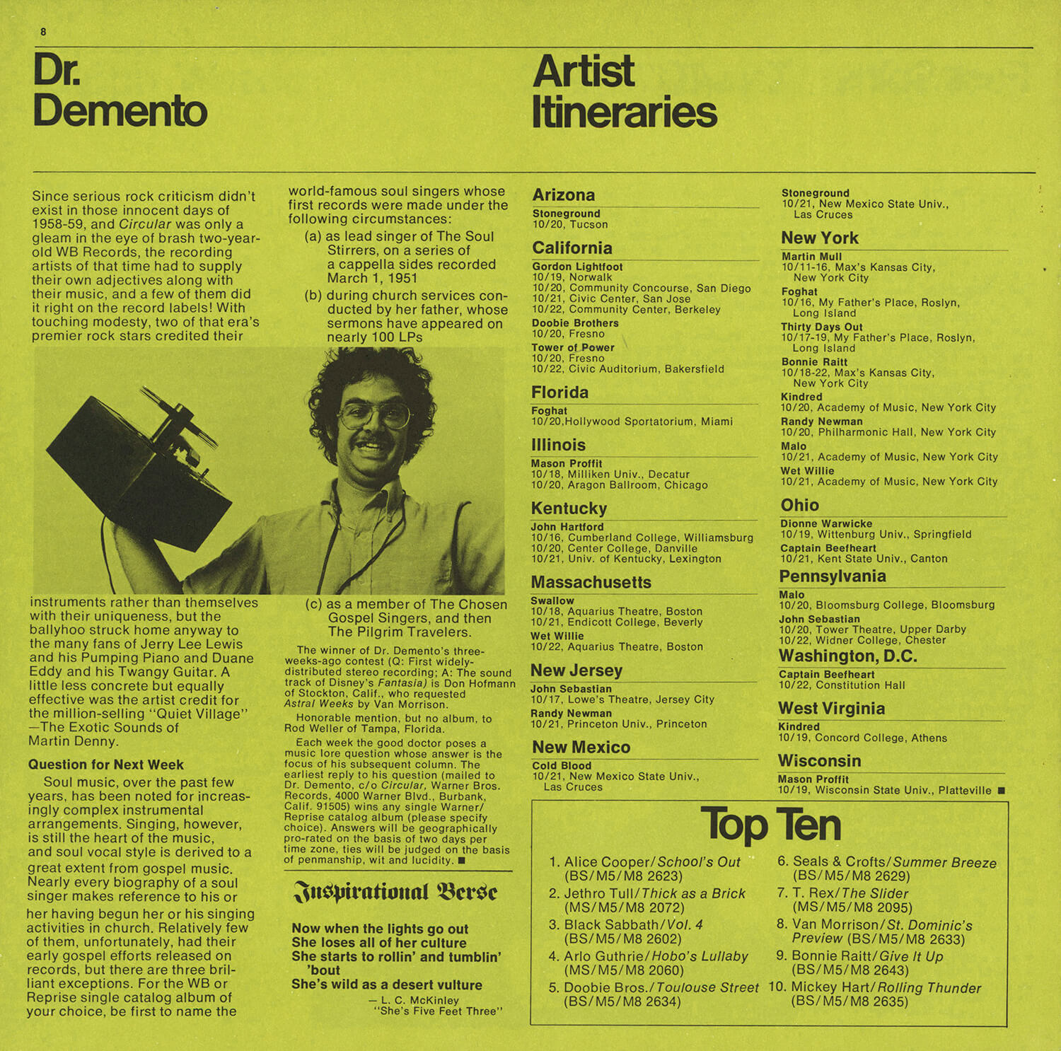 Tagged as "A Weekly News Device from Warner/Reprise" this promotional magazine ran from late 1969 until 1975. It began as a tri-folded booklet and then shifted to a square 8 1/2" magazine format. It was often mailed out folded so it's normal to find these with a crease down the center in its square form. The magazine had features and news on the artists signed to Warner/Reprise and the music industry in general, as well as album and singles commentary and sales information.
