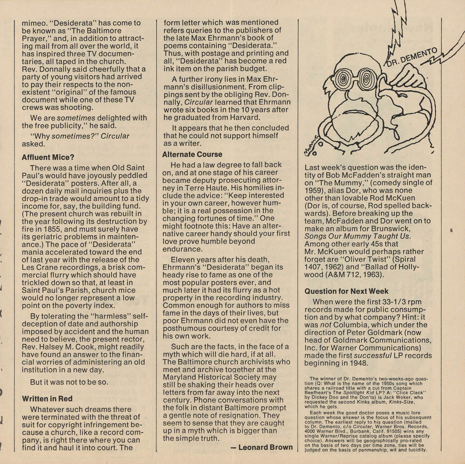 This archive of the Circular issues currently only covers 1971 - 1975, and those years are not complete — more will be added as missing copies are acquired. If you can help with missing issues, please contact us.