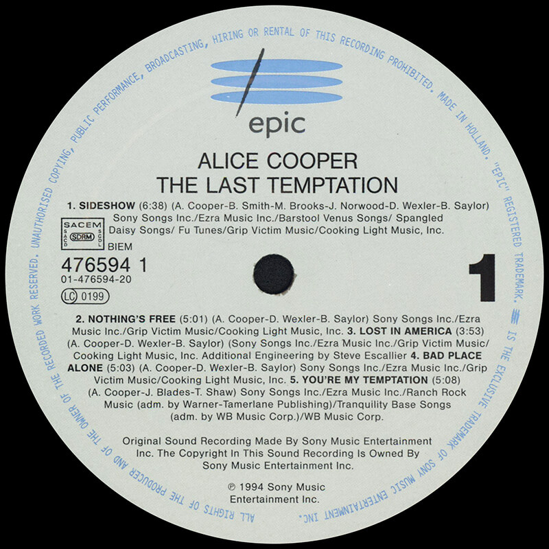 Sideshow [6:38] / Nothing's Free [5:01] / Lost In America [3:53] / Bad Place Alone [5:03] / You're My Temptation [5:08] / Stolen Prayer [5:36] / Unholy War [4:10] / Lullaby [4:27] / It's Me [4:38] / Cleansed By Fire [6:12]