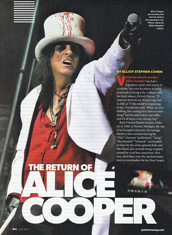 Veteran shock-rocker Alice Cooper has had a legendary career with plenty of accolades, but even he admits to being surprised at having a No. 1 album with his latest release, Detroit Stories. "If someone had told me 50 years ago that in 2021 at 73 this would be happening to me, I would have said, 'What, are you kidding me, like reading fairy tales or something?' but I'm still rockin' and rollin', and it's all been a very strange trip."