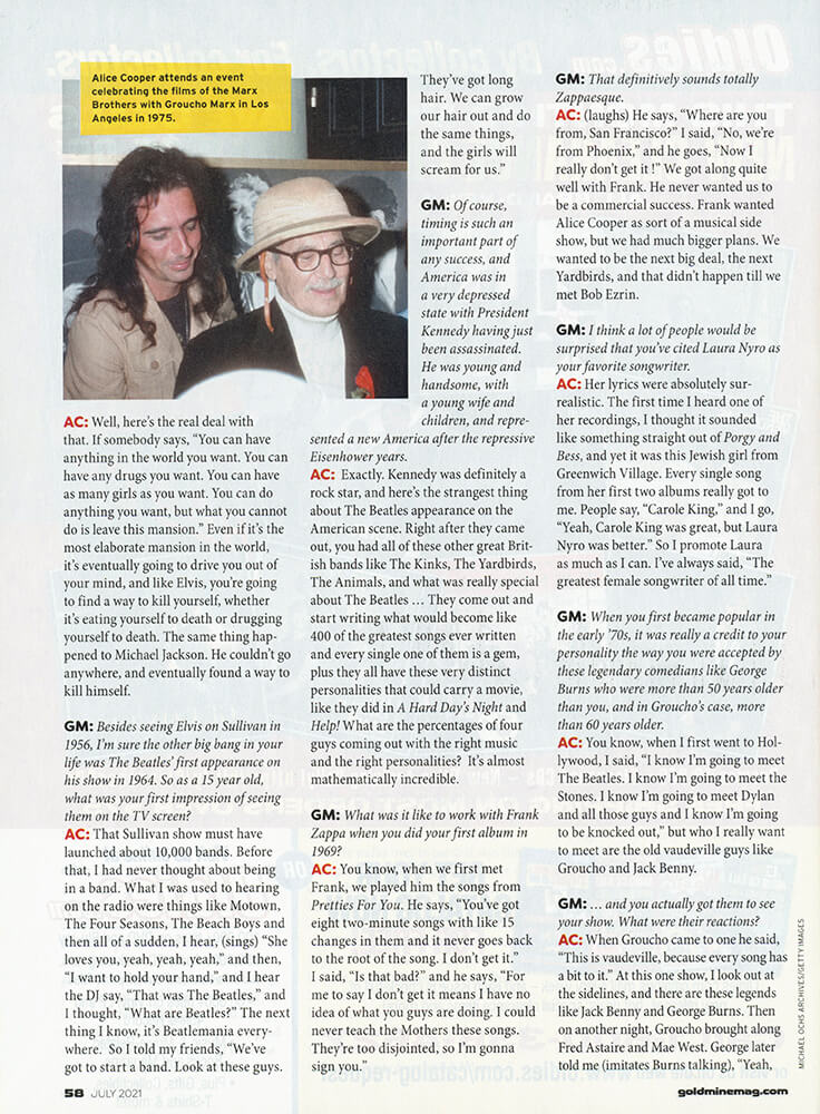 ALICE COOPER: Well, I was really good friends with Groucho Marx, and he said, "I can't call you Alice. I'm calling you Coop." So that stuck, and since then that's what everybody calls me.