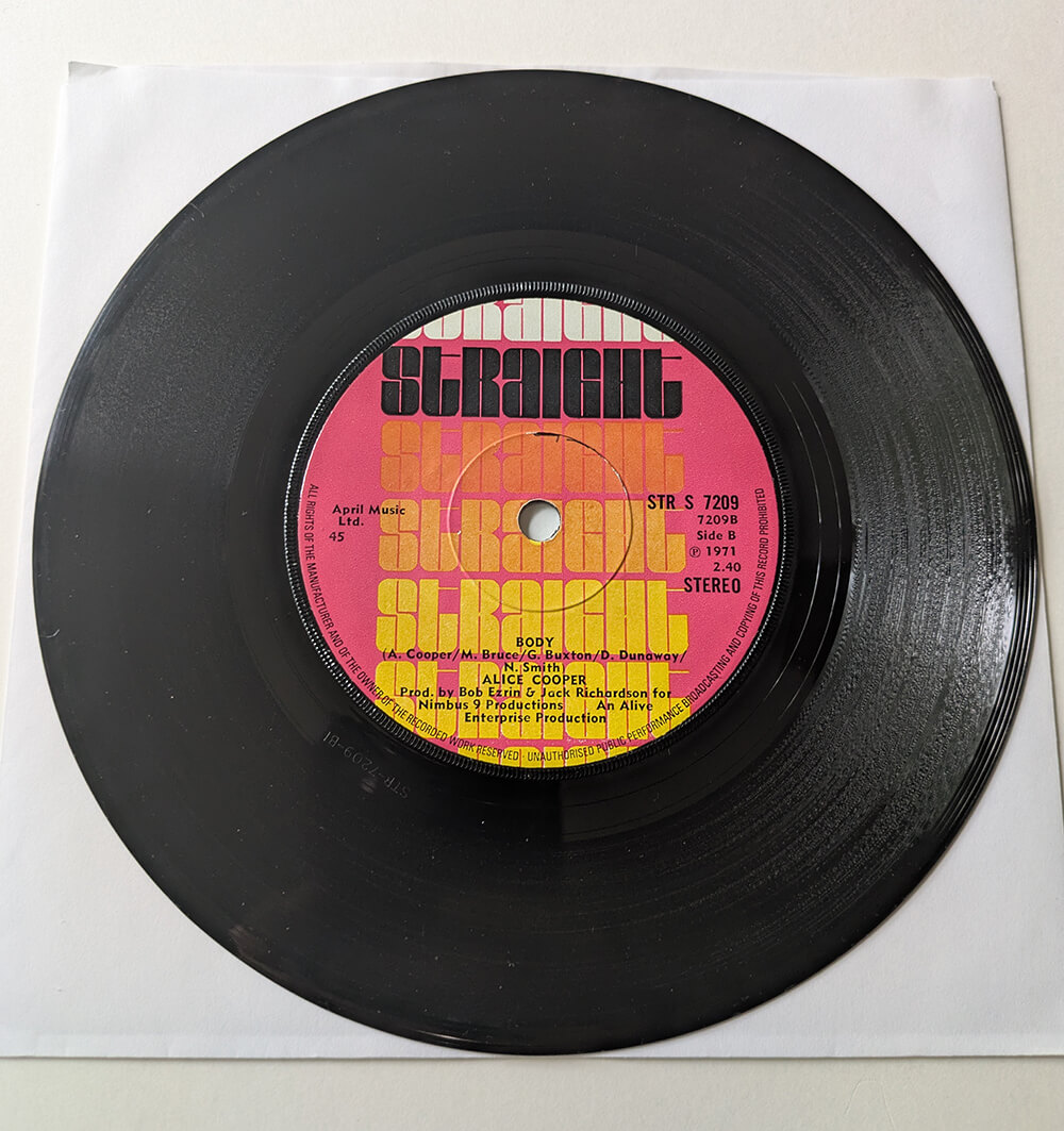 Original pressing of the Eighteen single on the Pink Straight label, b/w "Body". Rare single.