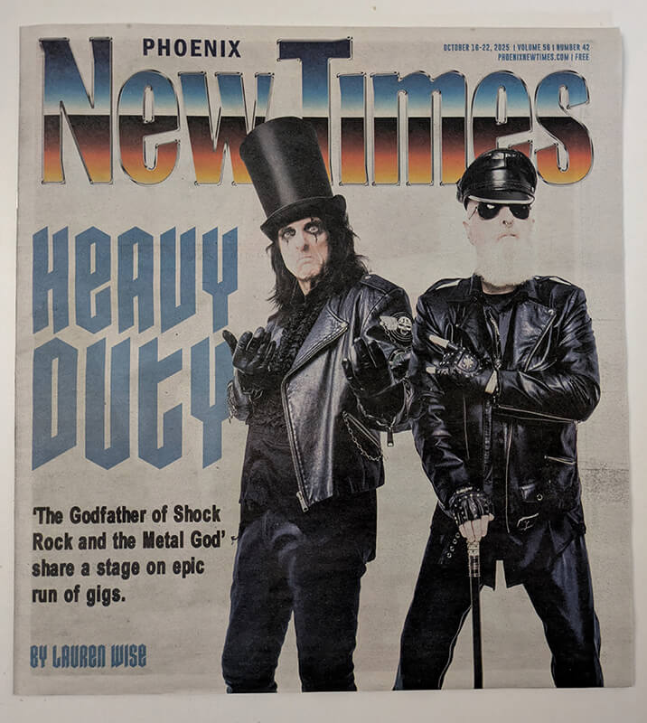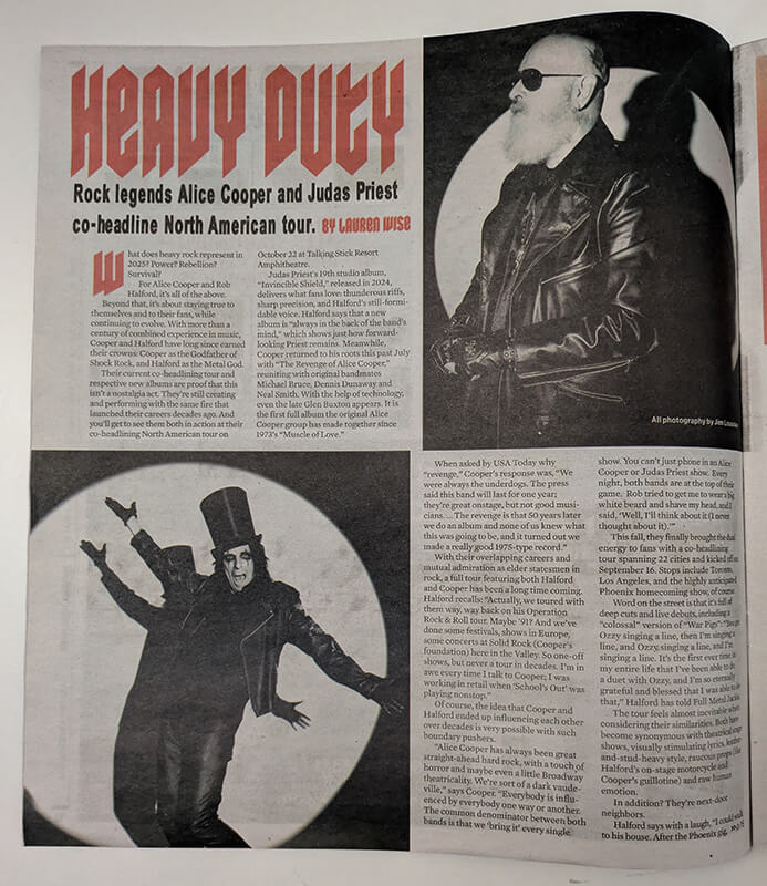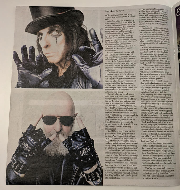 Alice and Rob Halford appear on the front cover of this local Phoenix, AZ publication. October 16-22, 2025. 2 pages inside.