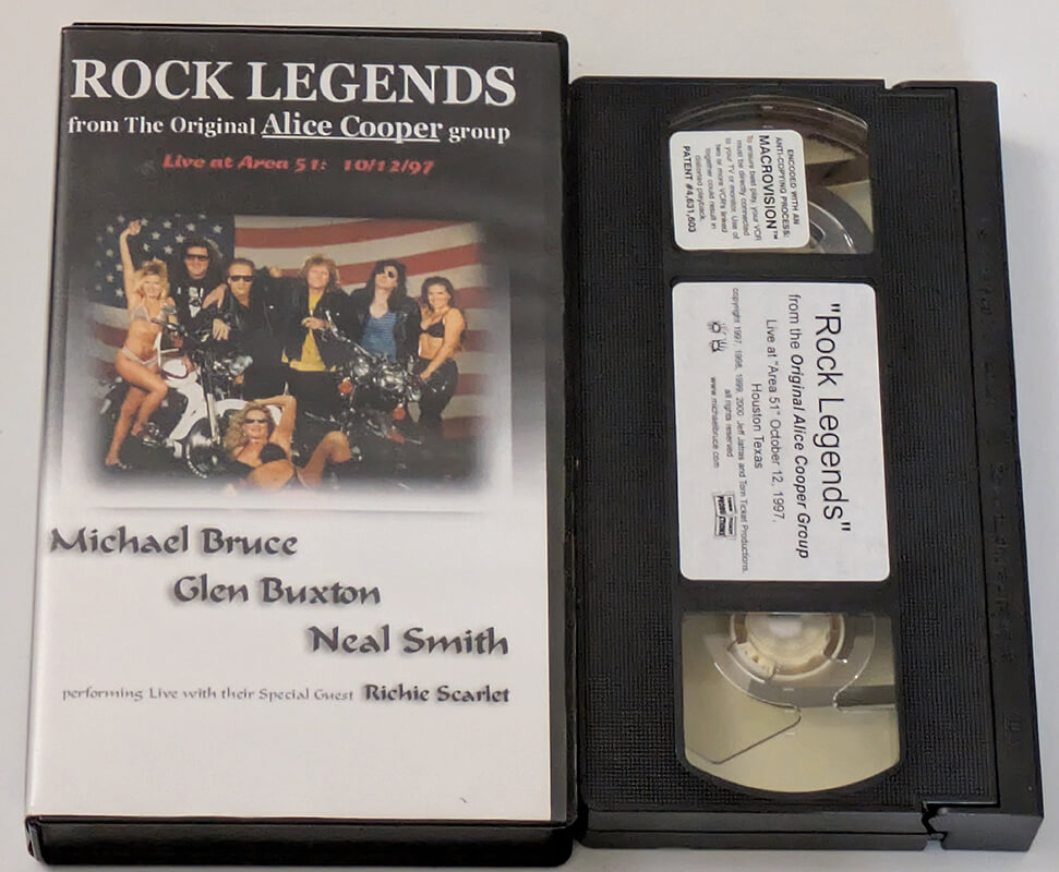 VHS recording of members of the original Alice Cooper group, including Glen Buxton, performing at Area 51 in 1997.