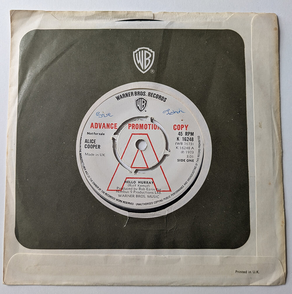 Rare Hello Hurray b/w Alma Mater -- US 7" single. Warner Brothers, WB 7673.